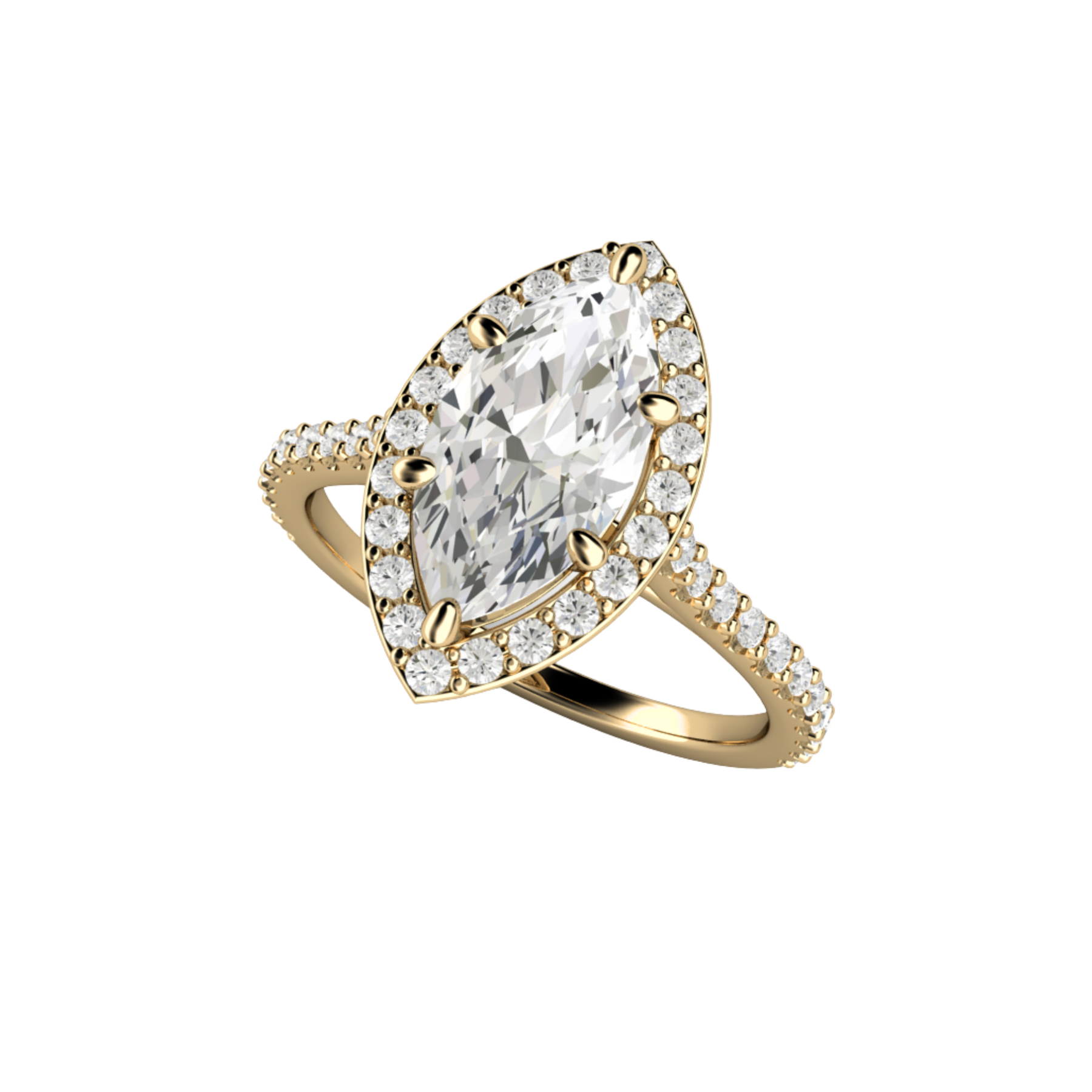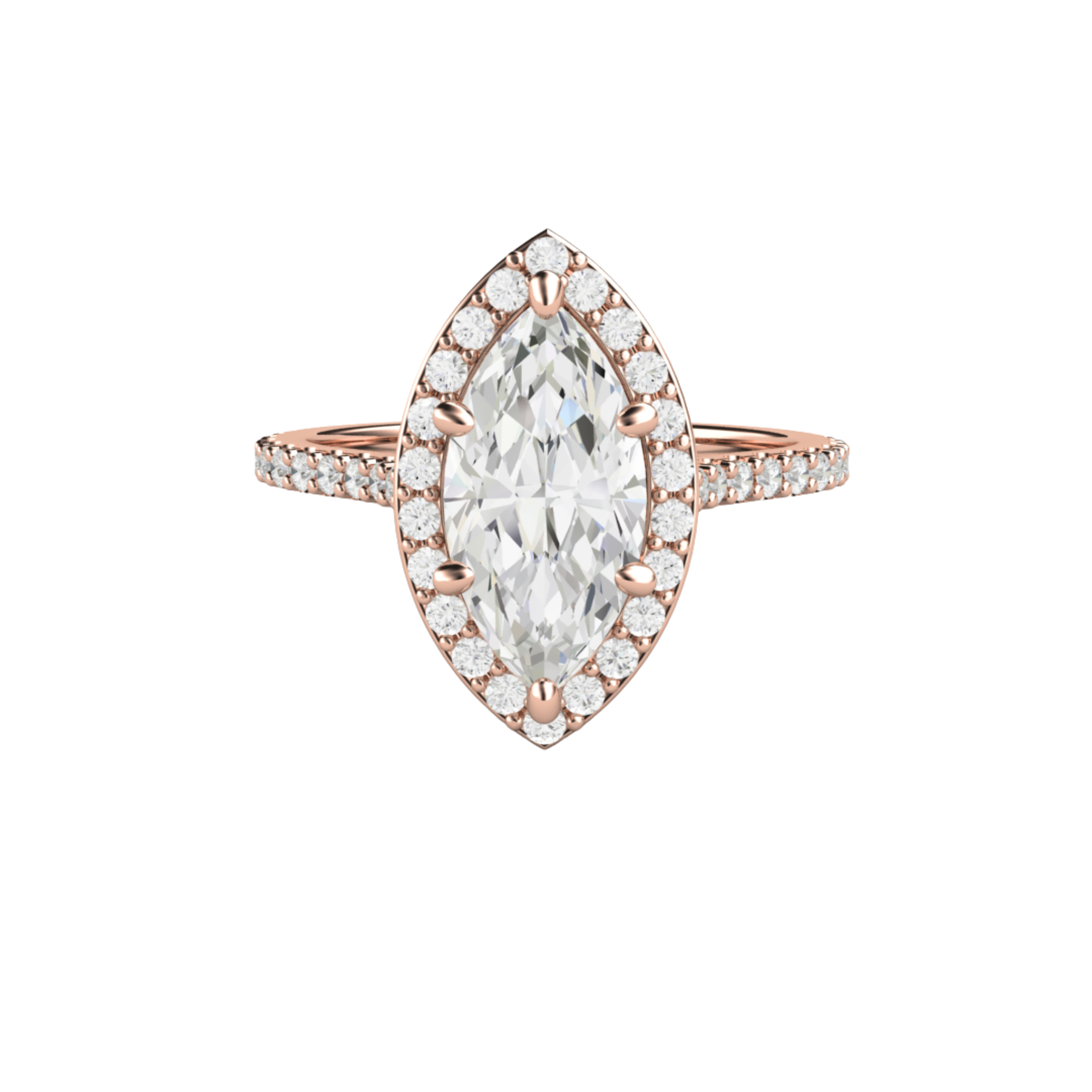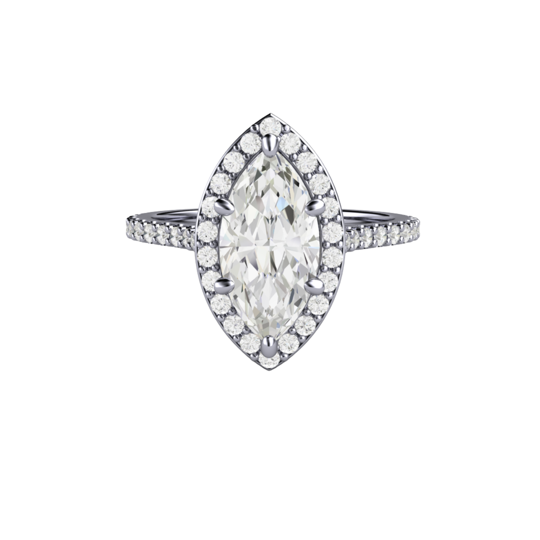 Marquise Cut Lab Grown Diamond Engagement Ring | Pave Halo with Hidden Diamonds