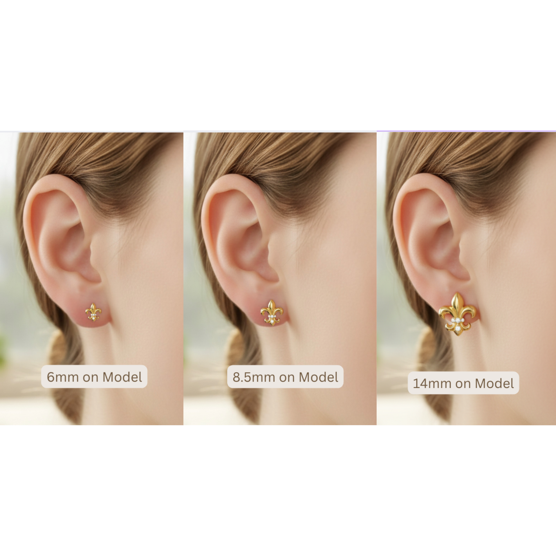 - Design: Fleur de Lis Stud Earrings