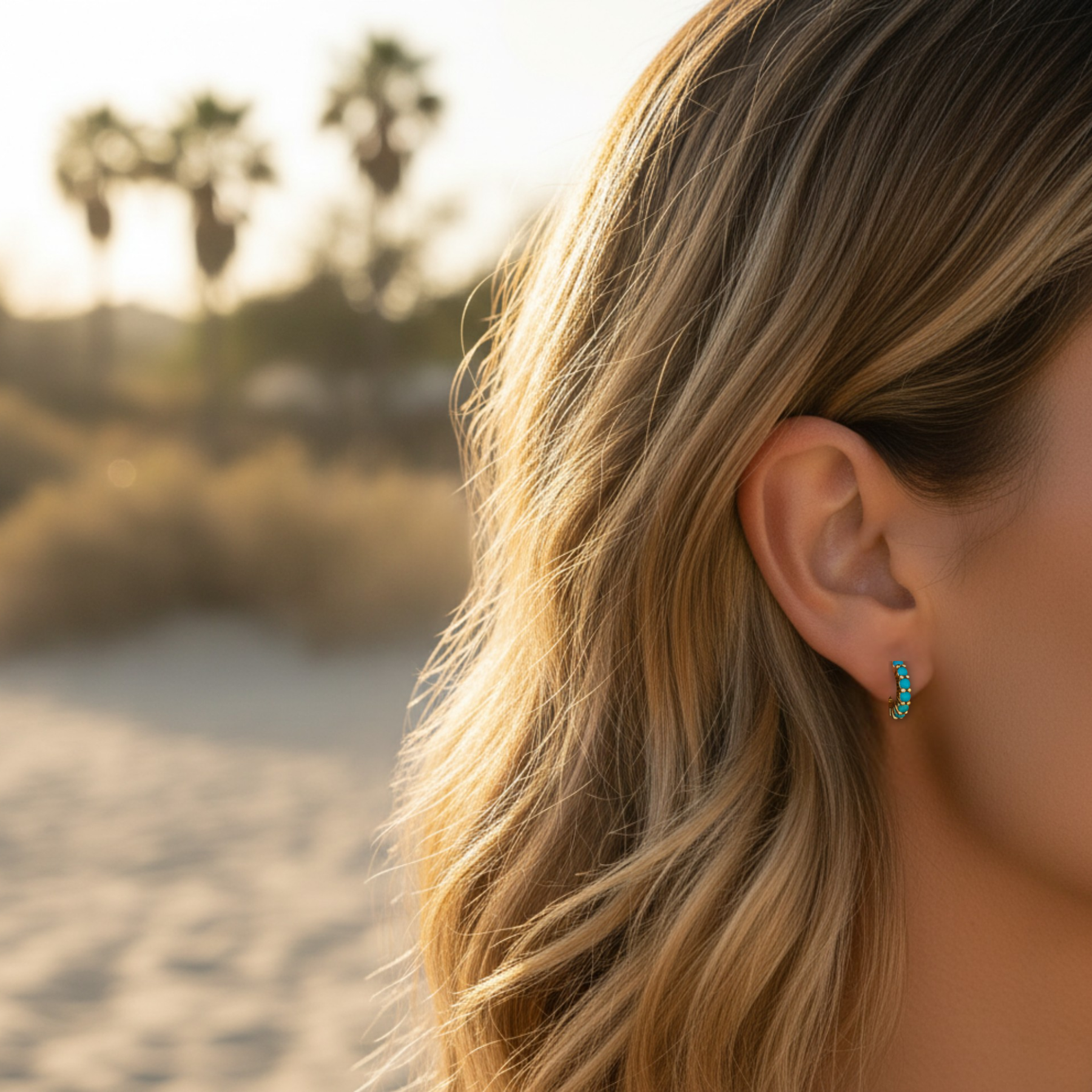 If you love turquoise earrings, small hoop earrings, or 14K gold huggies, these colorful miniature hoops will become an easy everyday favorite.