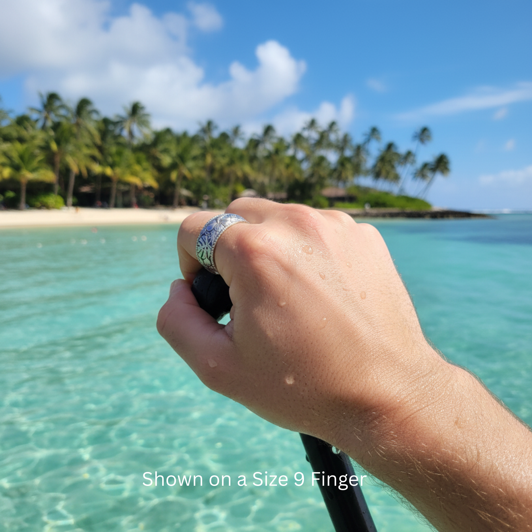 Because this is an 8mm wide band, many customers prefer ordering 1/4 to 1/2 size larger than their usual ring size for a more comfortable fit. If you’re unsure, I recommend trying a wide-band ring sizer or contacting me for help. If you'd like to see how an 8mm width looks on your ring size, I can provide a reference photo, just ask.