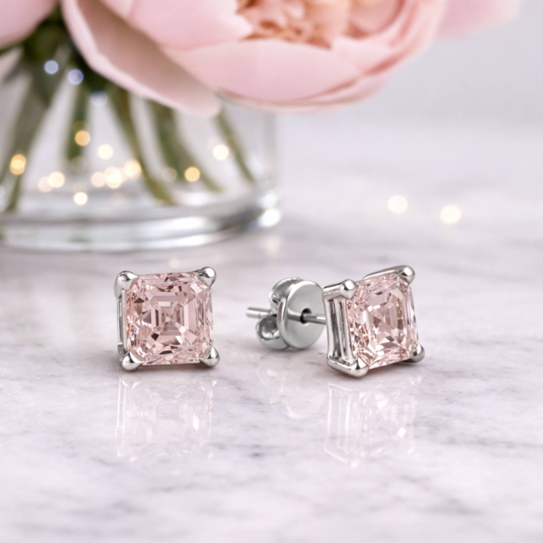 These classic Asscher cut morganite stud earrings feature soft blush pink gemstones in a timeless four-prong setting. The step-cut facets create a subtle, elegant sparkle, while the square shape gives them a clean, modern look that works effortlessly for everyday wear or special occasions.