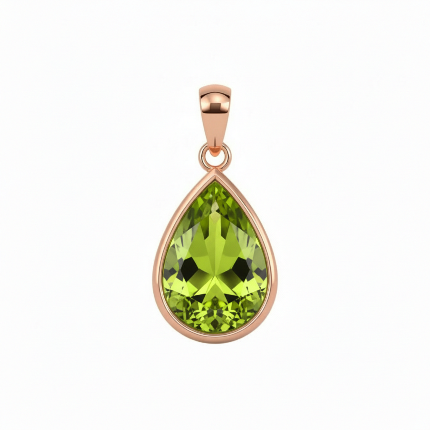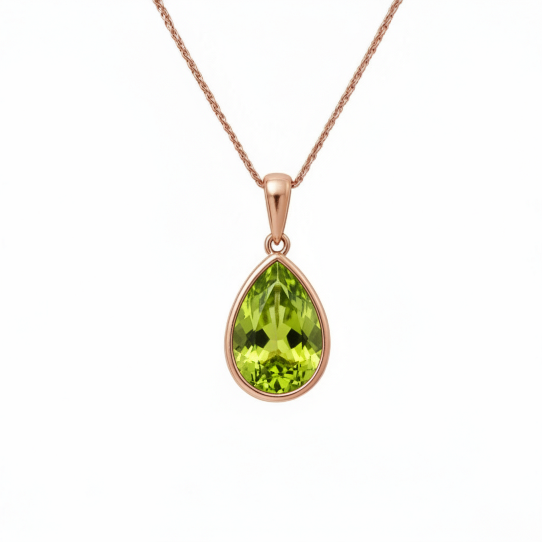 14K Rose Gold Peridot Pendant in Modern Bezel Set Design, Pear Cut Peridot Necklace, August Birthstone | Rare Earth Jewelry