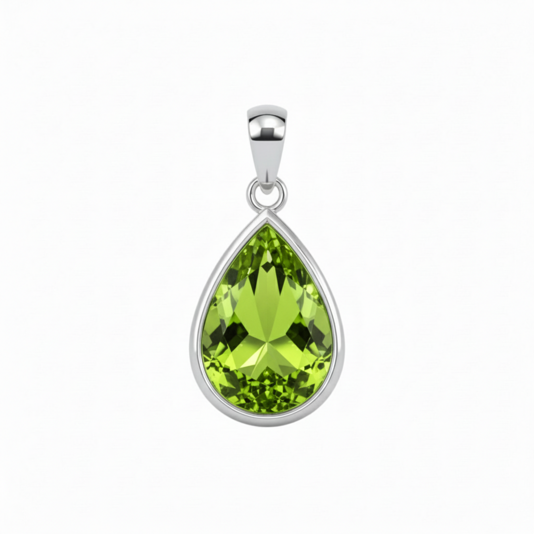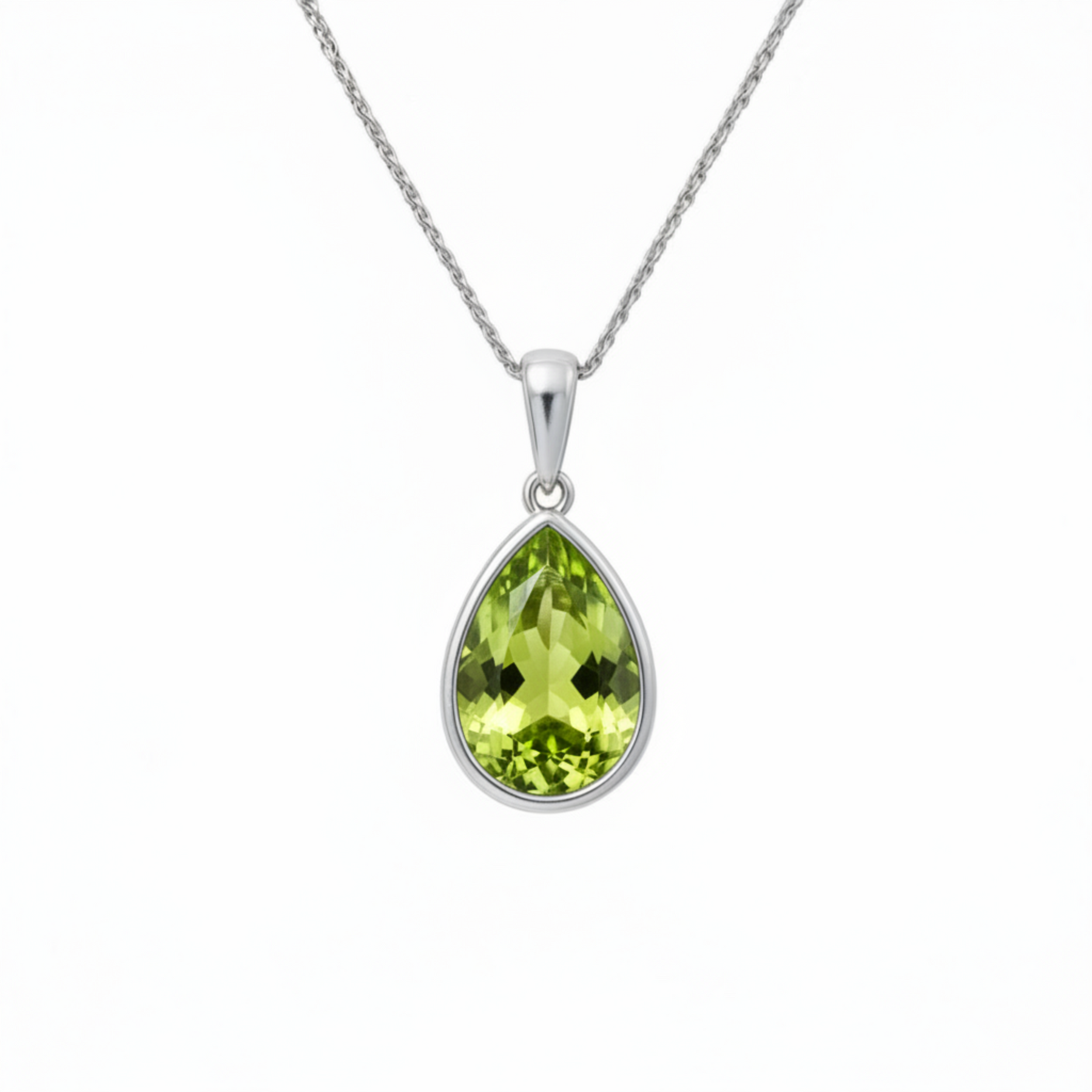Peridot Pear Cut Pendant in 14K White Gold, August Birthstone Pendant, Minimalist Design | Rare Earth Jewelry