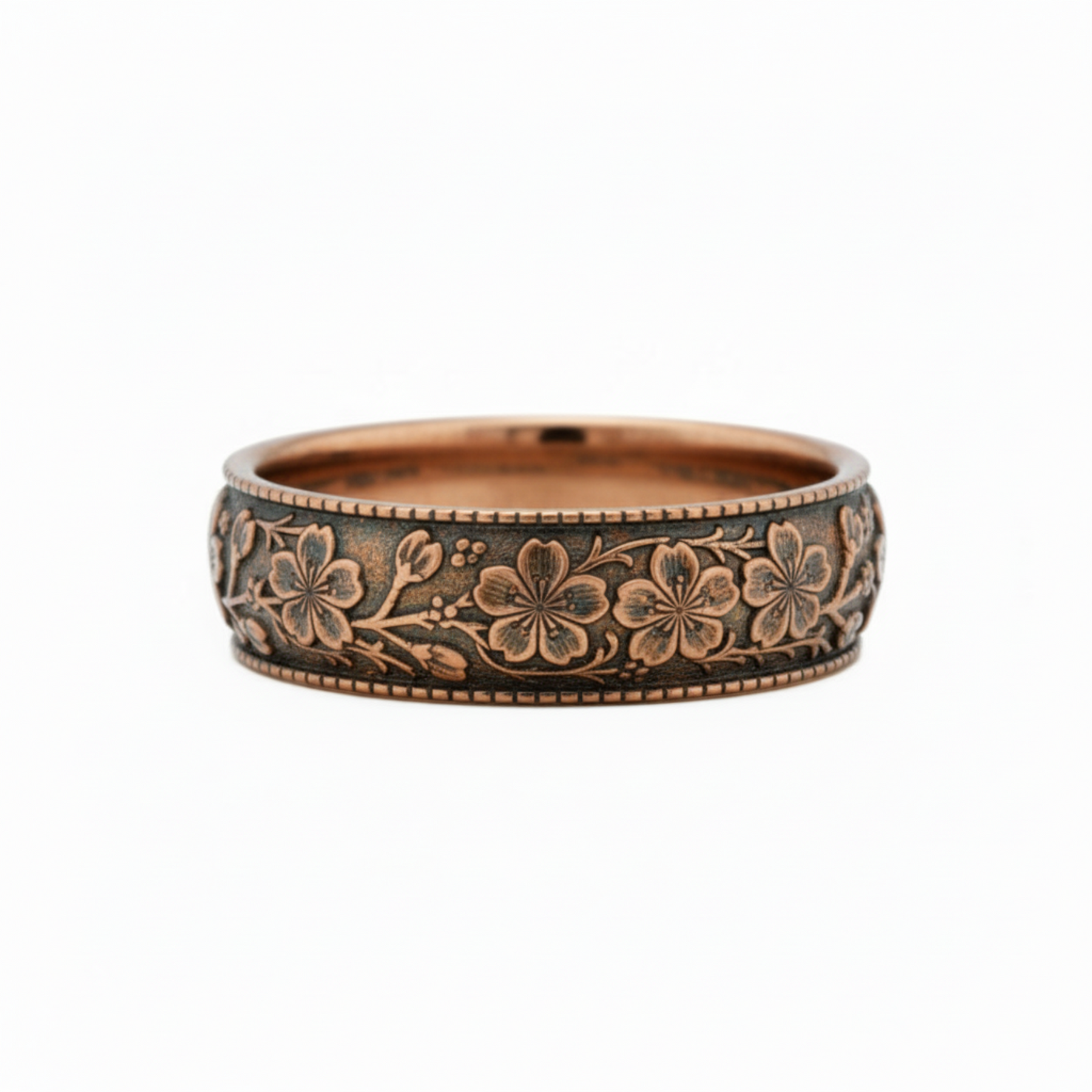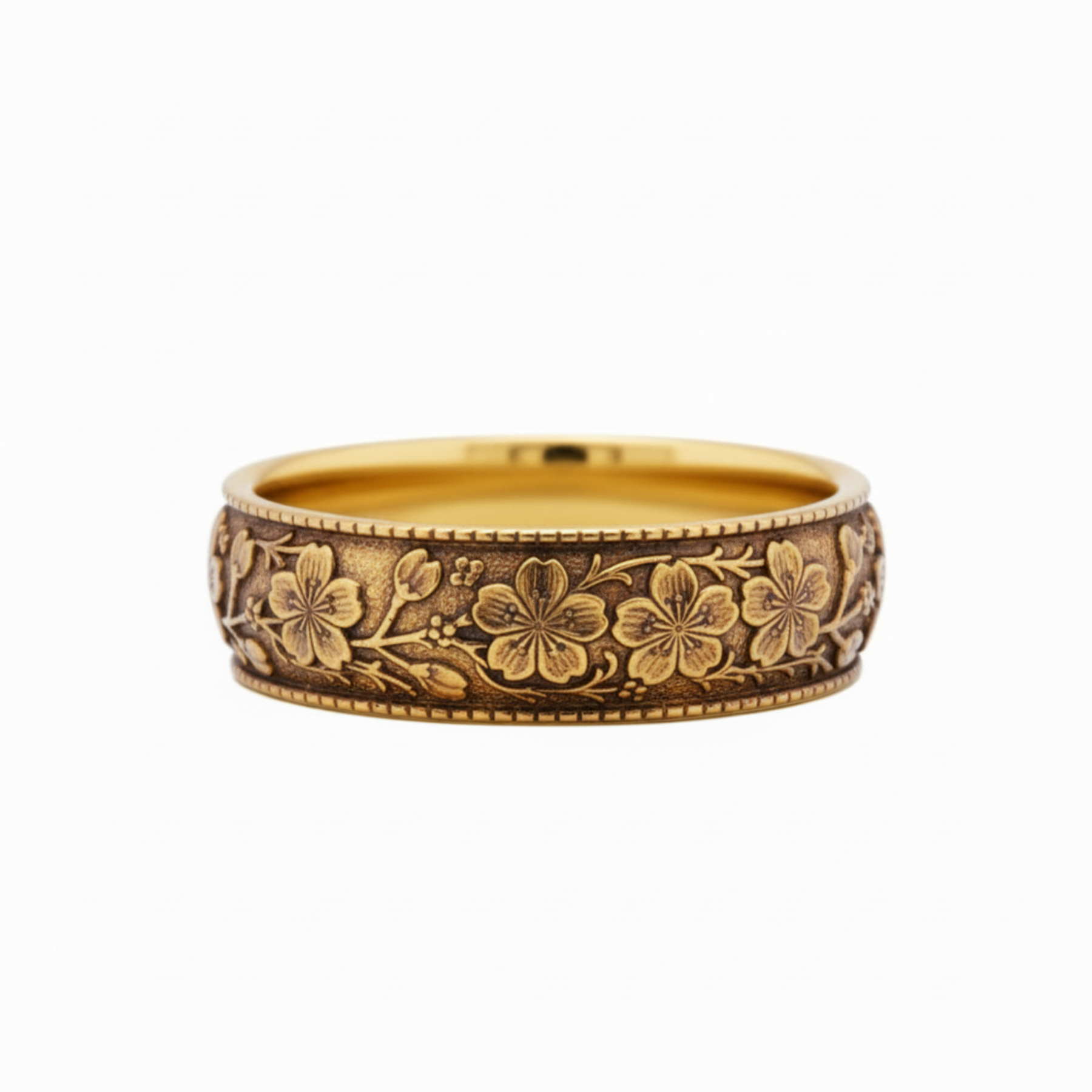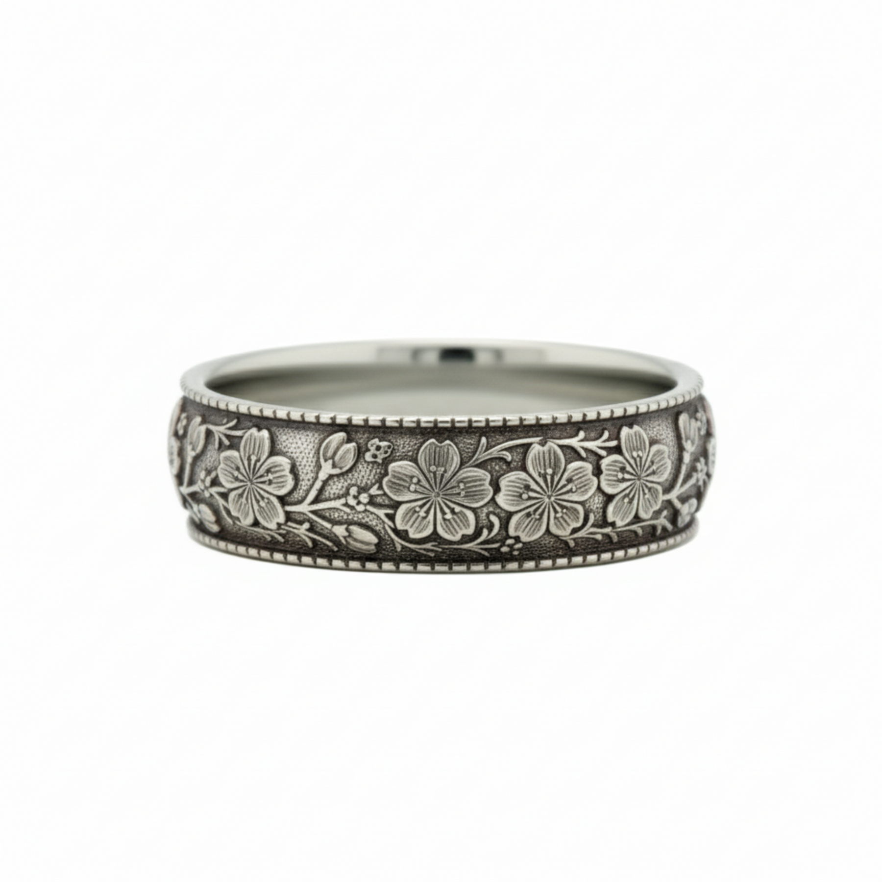 Cherry blossoms traditionally symbolize renewal, love, and the beauty of life’s fleeting moments, making this band perfect for anyone who loves meaningful, nature-inspired jewelry.